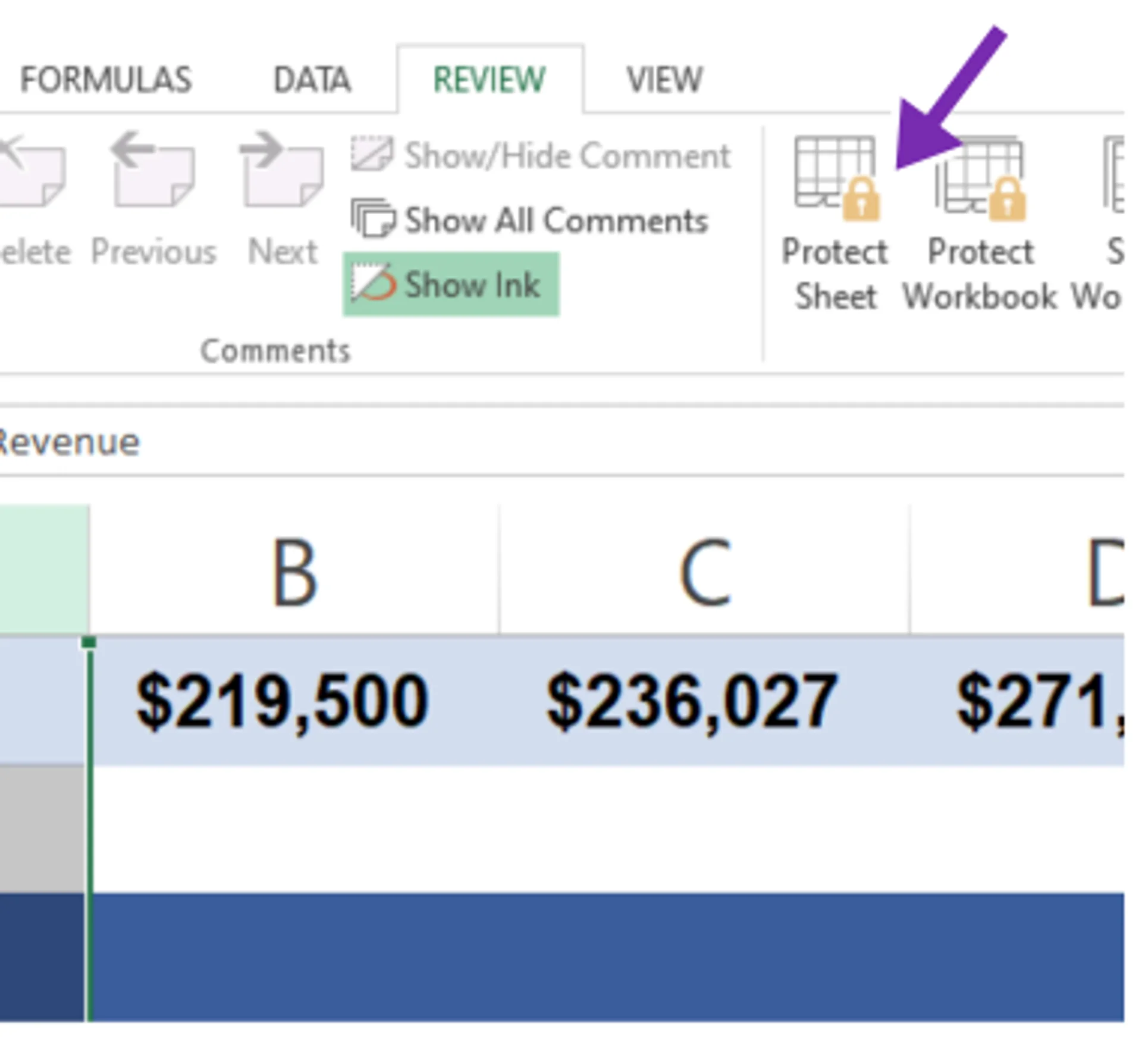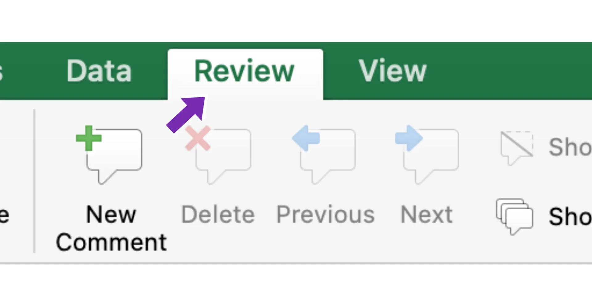 1. Navigate to the Review tab on the Ribbon and select it. The Ribbon, also known as the toolbar, is at the top of the Excel window. The ribbon houses several tabs, including File, Home, Review, Data, and Formulas.